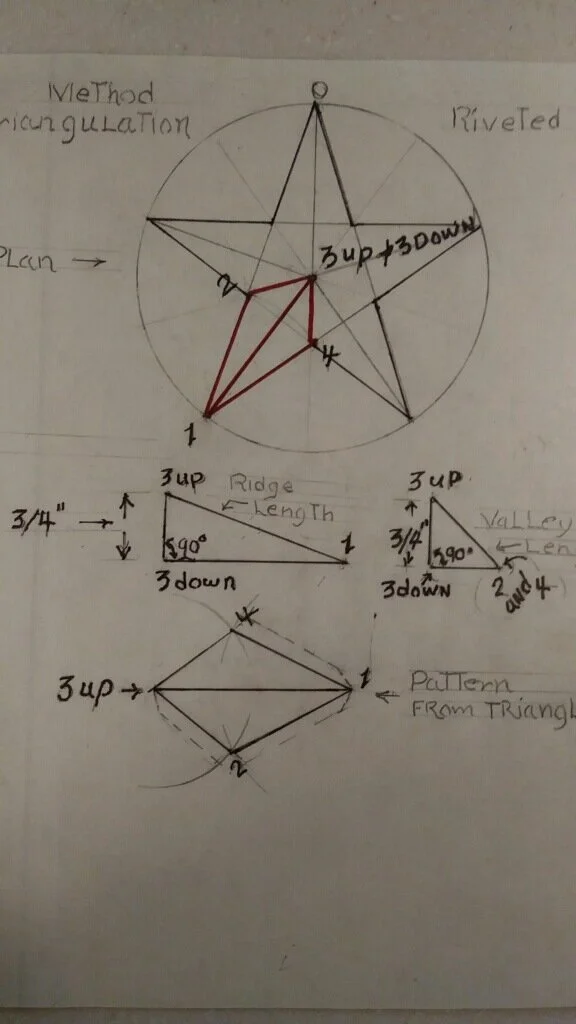 Handcrafted stars made from flattened rolls of galvanized steel—